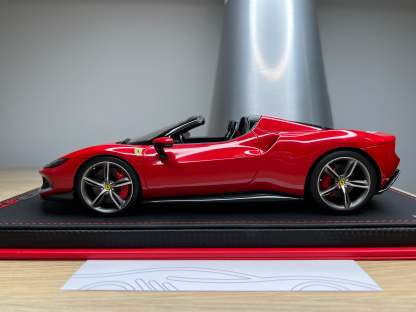 Brand new release by Ferrari - Ferrari 296 GTS. Made by MR Collection (code FE037E), 1:18 scale, in Rosso Imola with Assetto Fiorano in Argento Nurburgring. Limited edition (model cars made: 149). Comes with display base and high end plexiglass display case.