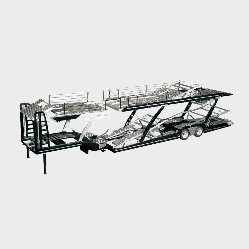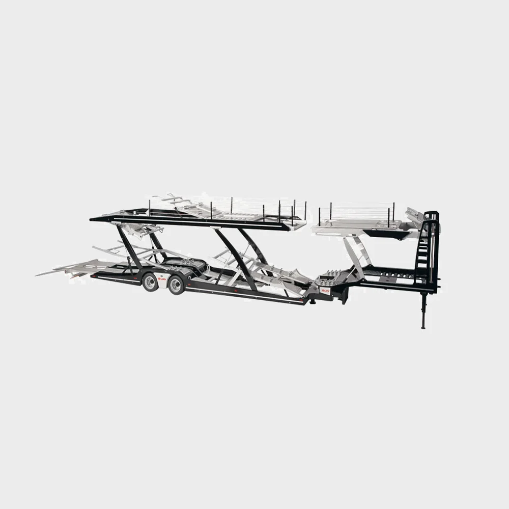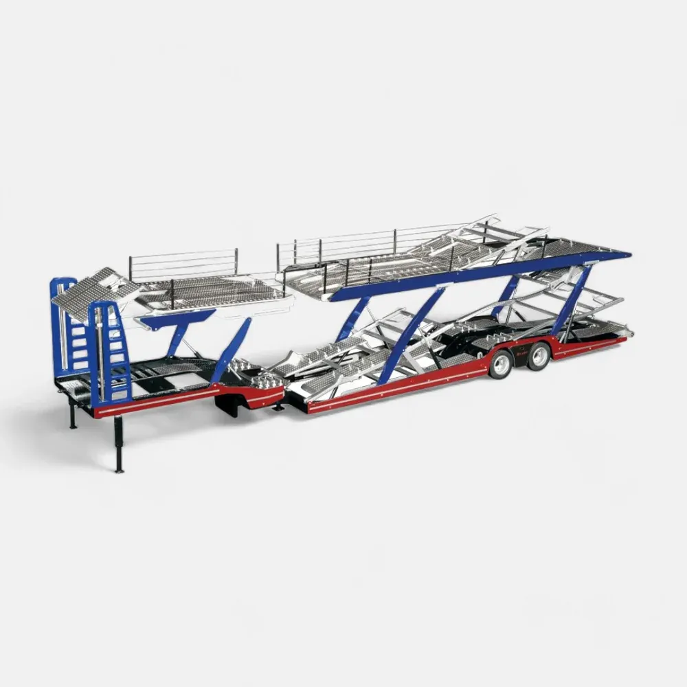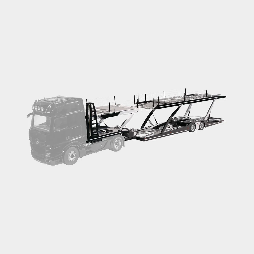 The Lohr Car Transporter model features extendable loading ramps, the capacity to load up to 8 car models, a detailed control panel, and a lowerable upper ramp. Crafted with precision and high-quality materials, this model showcases the innovative engineering and versatility of the real vehicle.