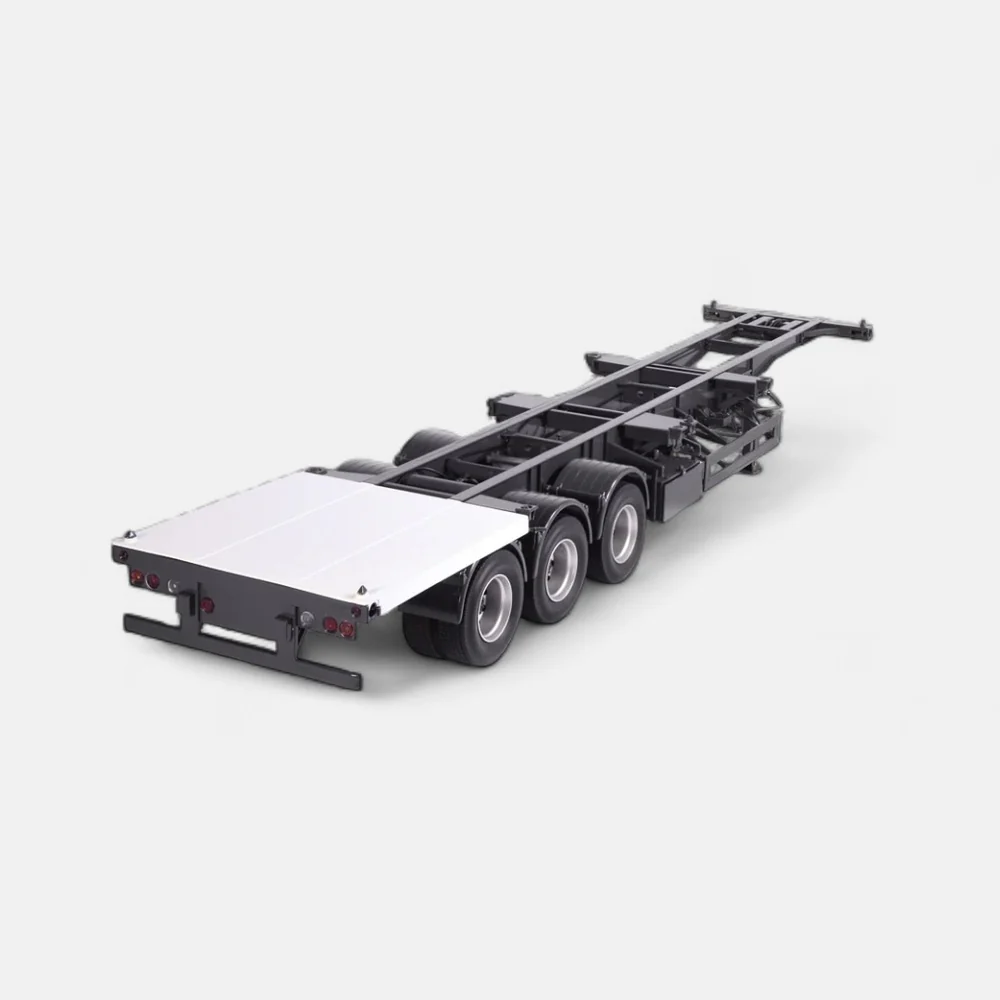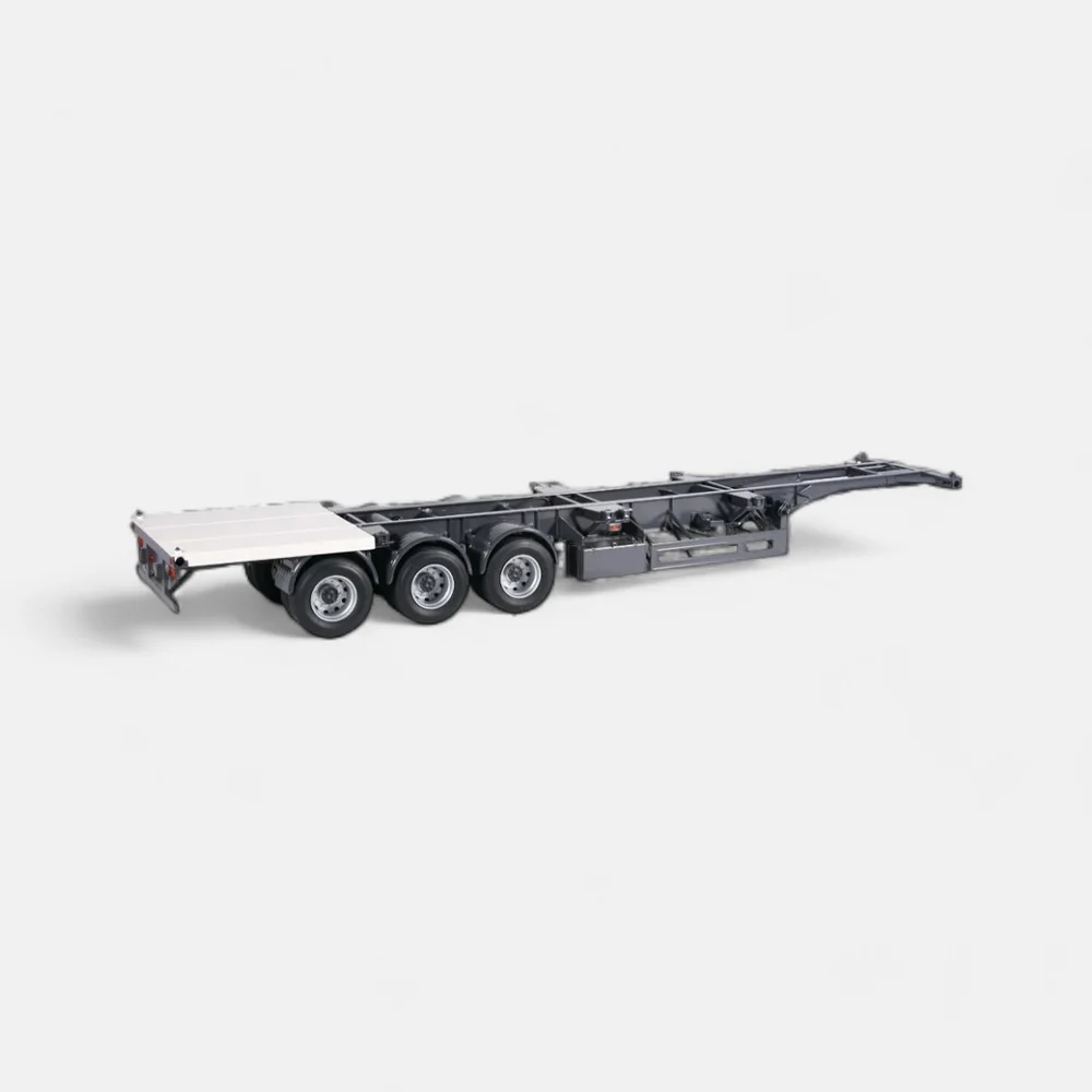This model features a 40 ft container with lockable doors using original mechanics and rubber seals on the doors, offering a realistic and detailed representation of the trailer and container setup.