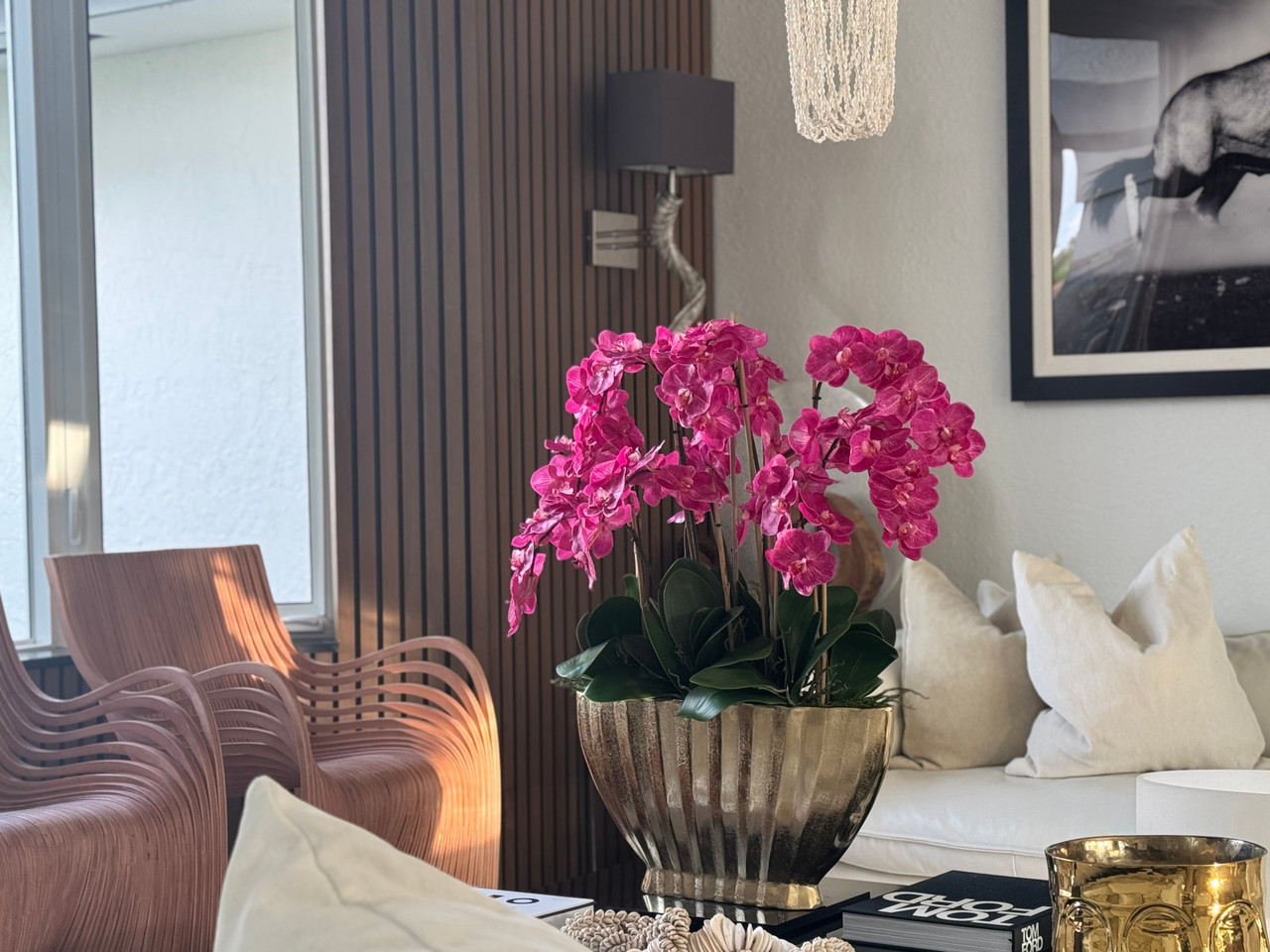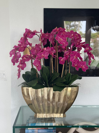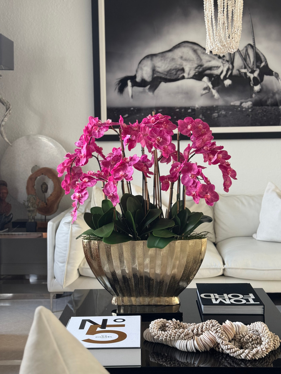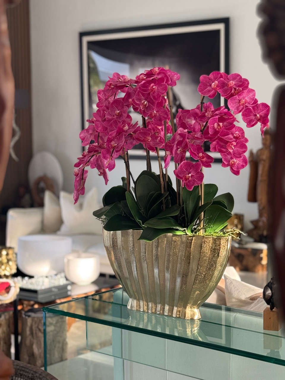 Vivien Gold Vase with Pink Phaleanopsis Orchids